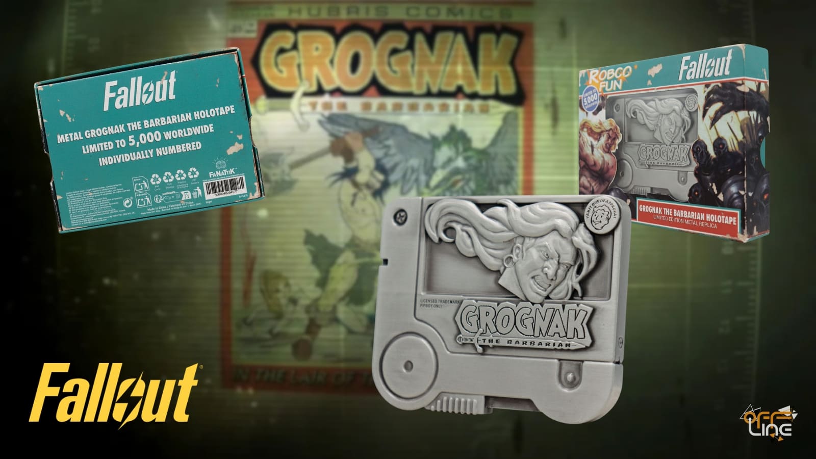 Přímo ze stránek předválečného komiksu Grognak the Barbarian ti tato limitovaná sběratelská holografická páska umožní ovládat sílu dokonalého hrdiny mávajícího sekerou... aniž bys přilákal|a hordu divokých ghúlů. Tato replika holografické pásky, založená na Vault-Tec schválené RPG hře Pip-Boy Grognak and the Ruby Ruins, se vyznačuje silně reliéfním designem a oboustrannými detaily, vytvořenými pro obyvatele Vaultu, kteří vyžadují trochu zábavy navíc.