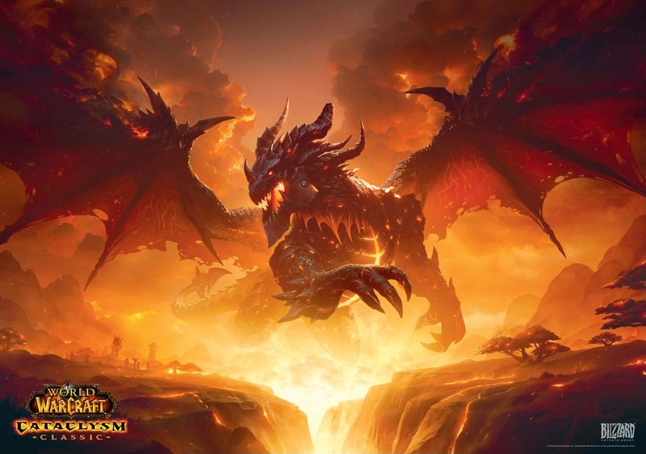 Jedinečné vyobrazení konce světa World of Warcraft tak jak jsme ho znali. Cataclysm [třetí datadisk] fungoval jako „reset“ nebo „apokalypsa“, která trvale změnila tvář Kalimdoru a Eastern Kingdoms, čímž opravila zastaralé herní oblasti z původního WoW a není nic lepšího tomuto symbolu než obří drak Deathwing, který se vrací z elementární roviny přinést zkázu a restart Azerothu.
